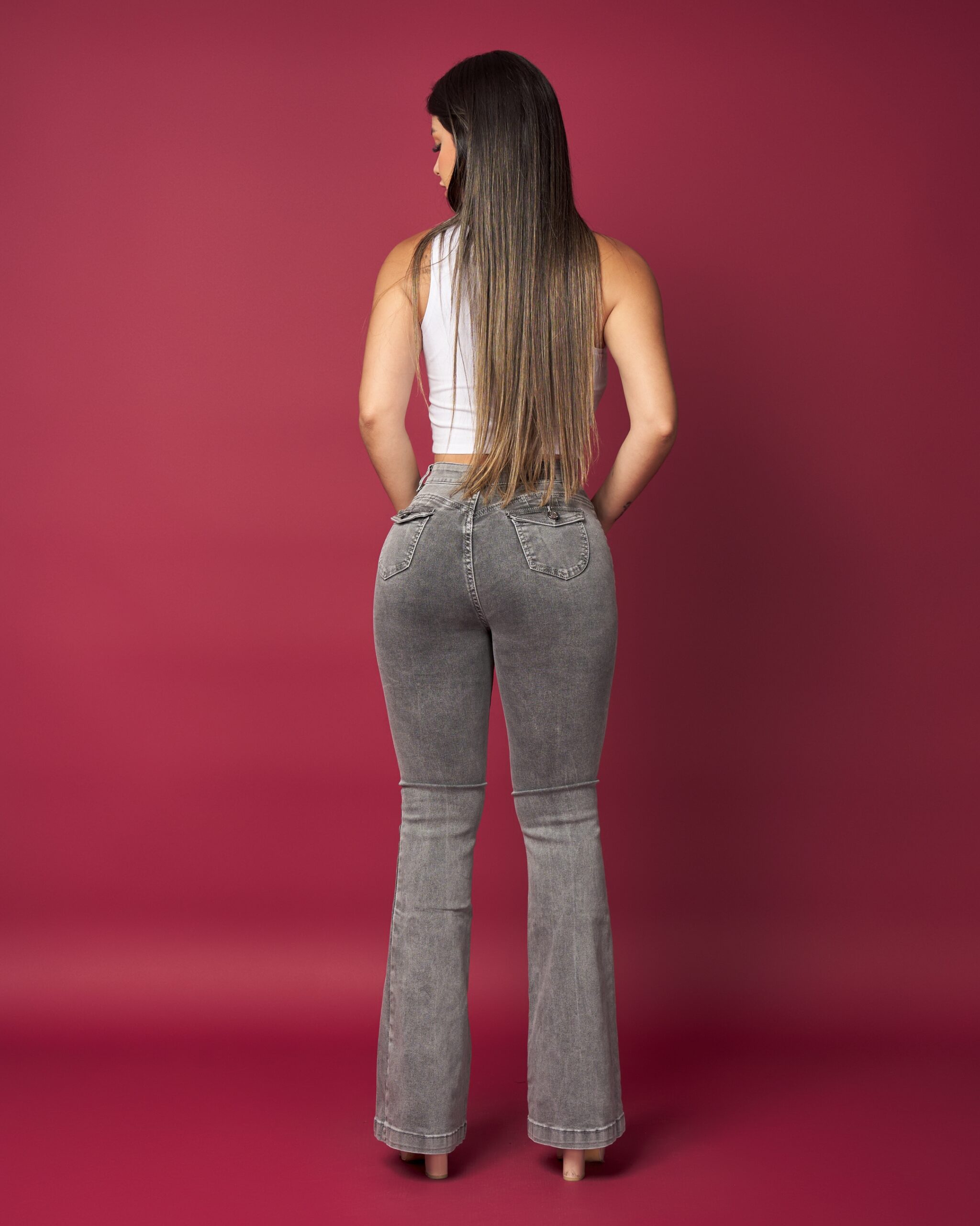 Jeans de corte flare con calce estilizador que realza la figura y aporta un look moderno y elegante. Confeccionado en denim de excelente calidad, cómodo y resistente, ideal para tiendas que buscan modelos versátiles con alta rotación.