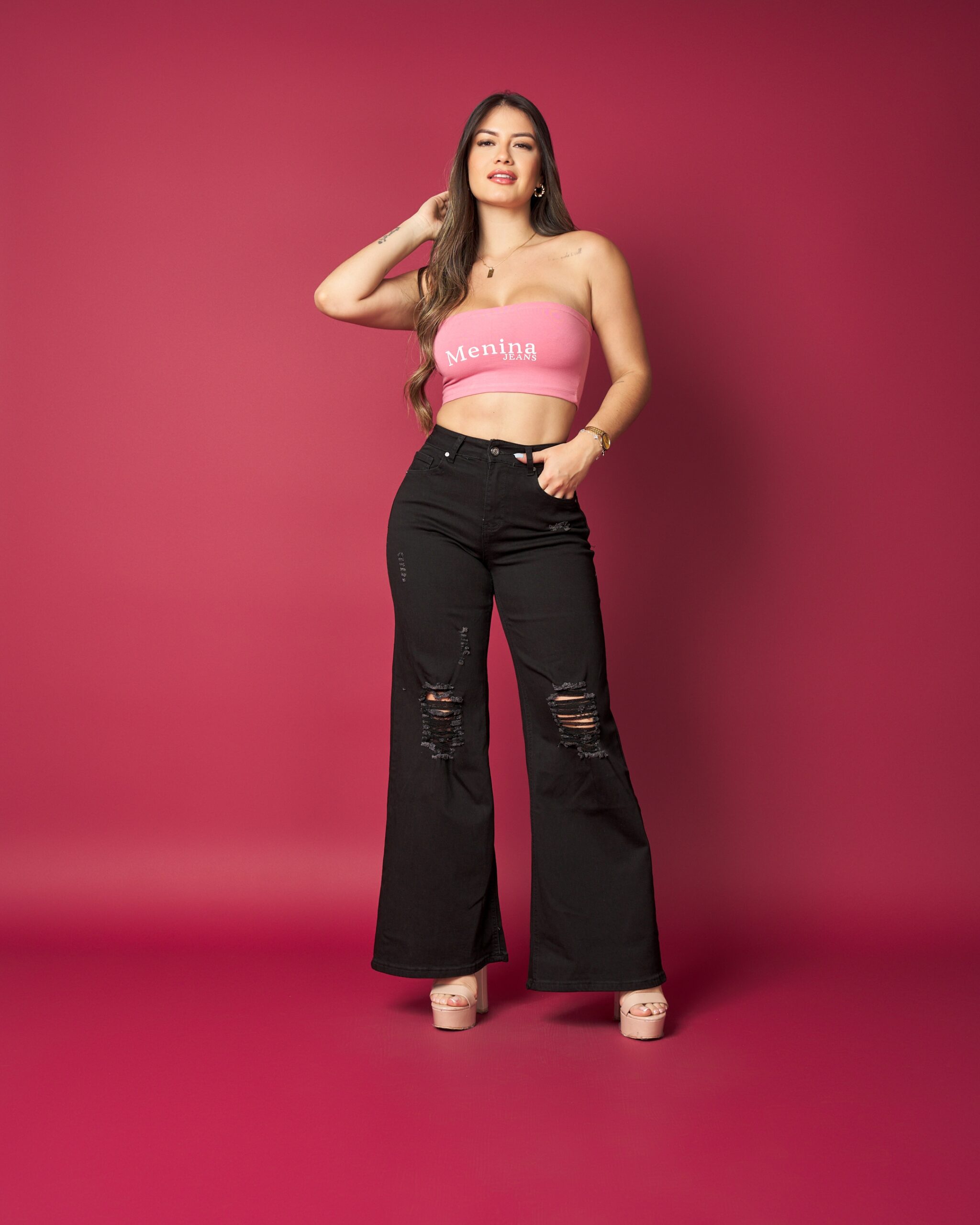 El MB7009-2 es un jean de alta rotación gracias a su lavado negro, pierna ancha moderna y detalles destroyed que marcan tendencia esta temporada.