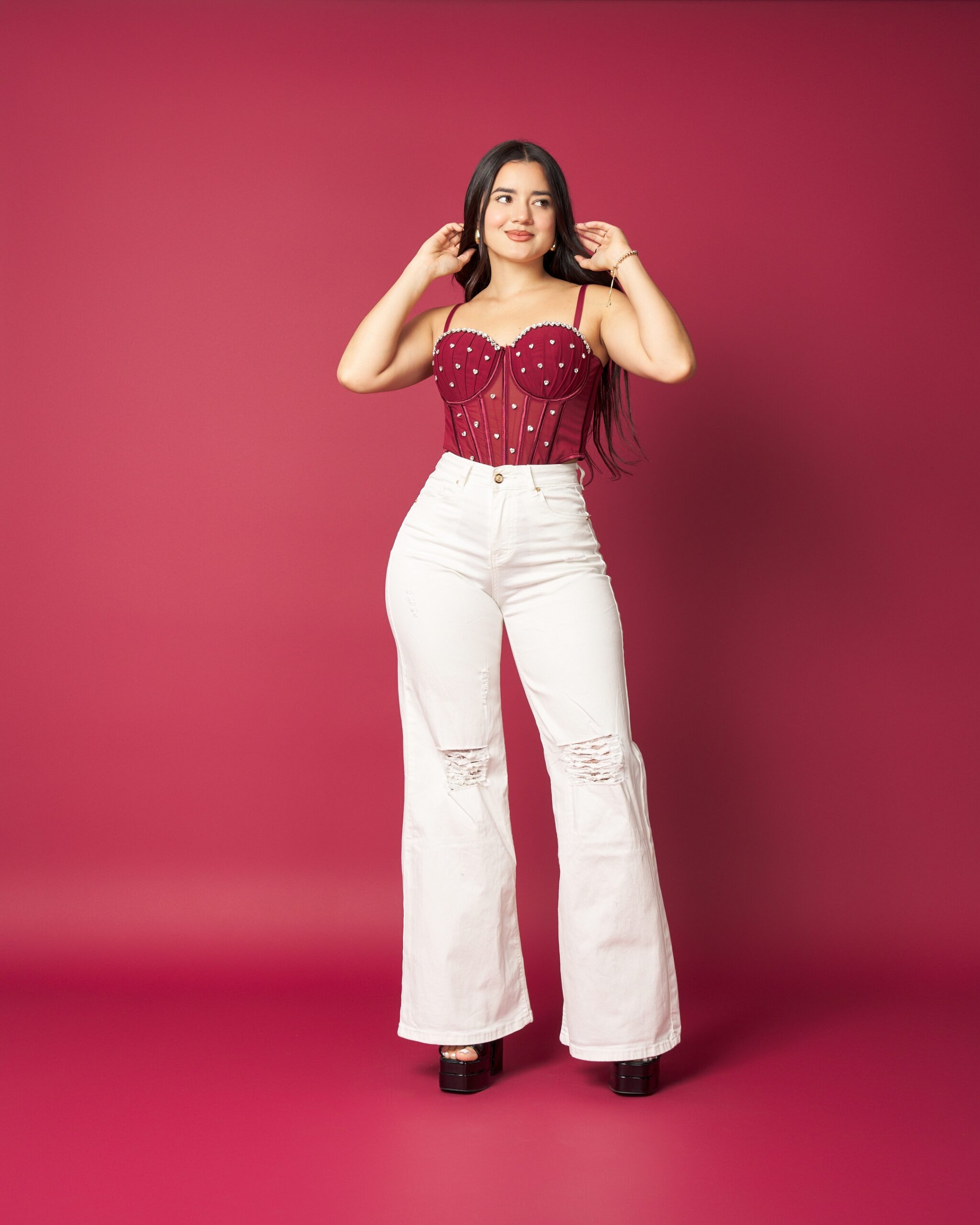 Este jeans blanco combina un diseño moderno con un calce que estiliza la figura de forma natural. Su denim cómodo y de excelente caída te brinda libertad de movimiento, mientras los detalles desgastados aportan un toque juvenil y actual.