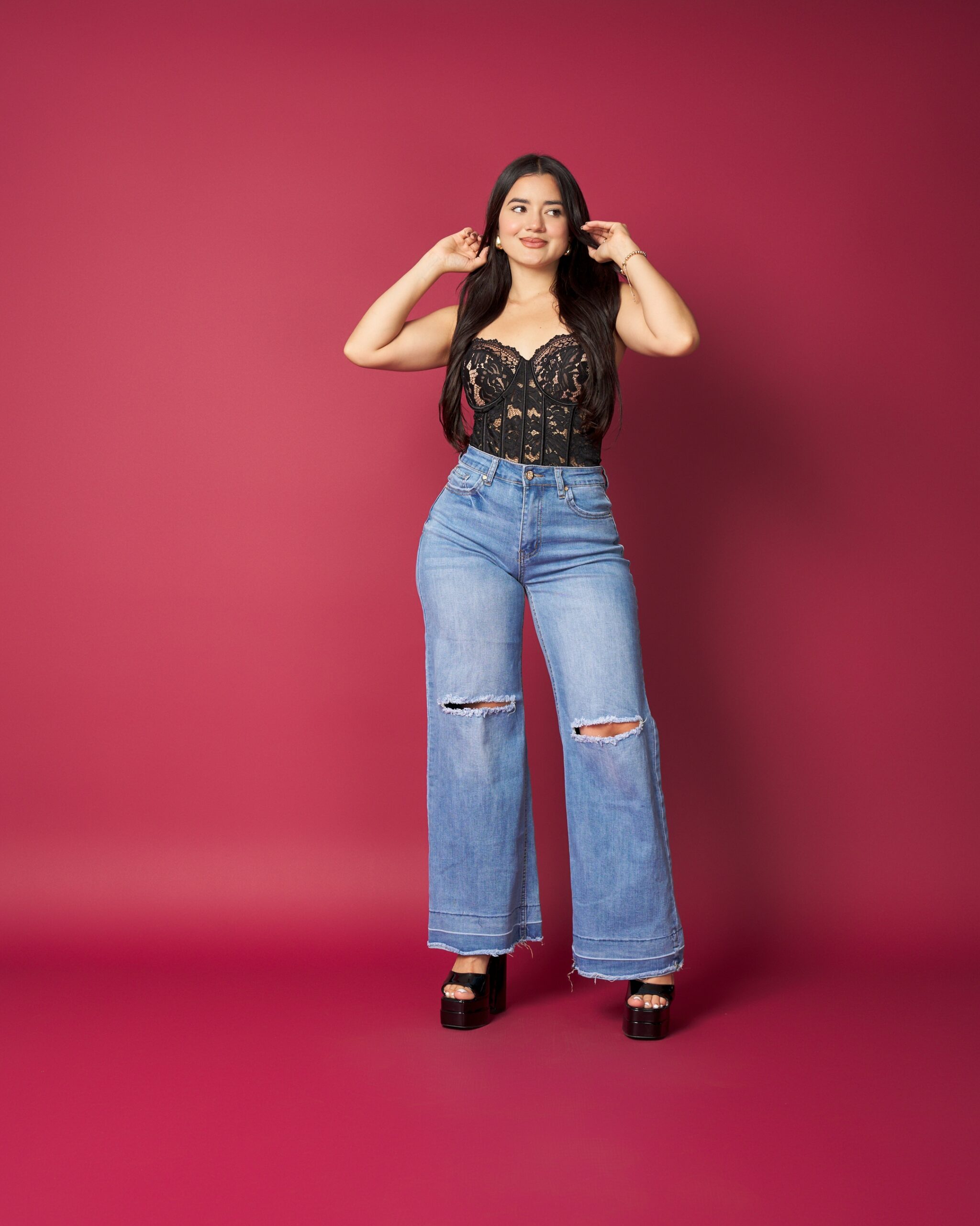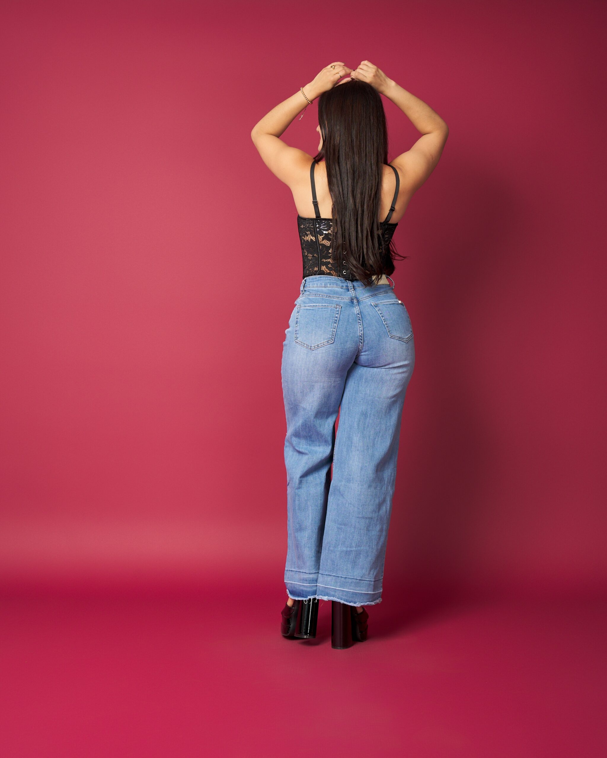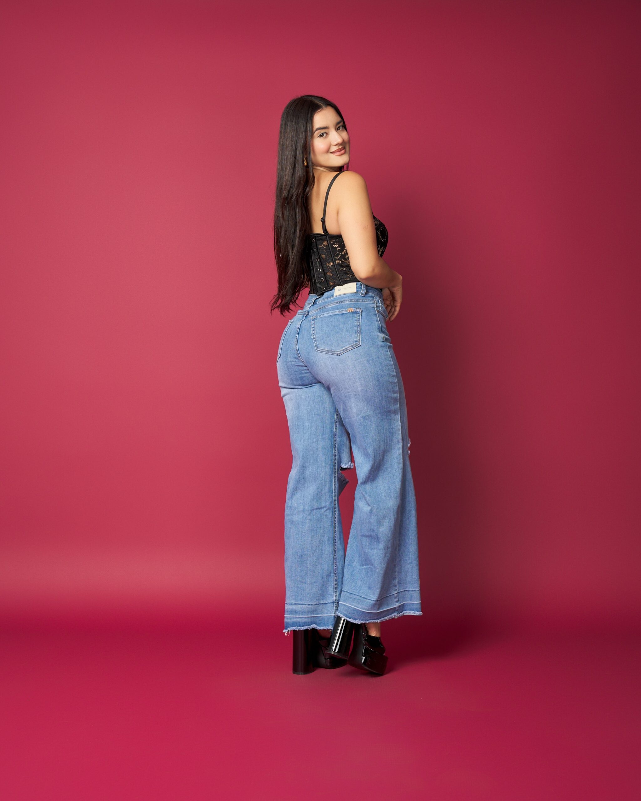 Este jeans combina un diseño moderno con un calce favorecedor que realza la silueta de forma natural. Su denim cómodo y resistente te acompaña durante todo el día, mientras los detalles desgastados le dan un toque urbano y actual.