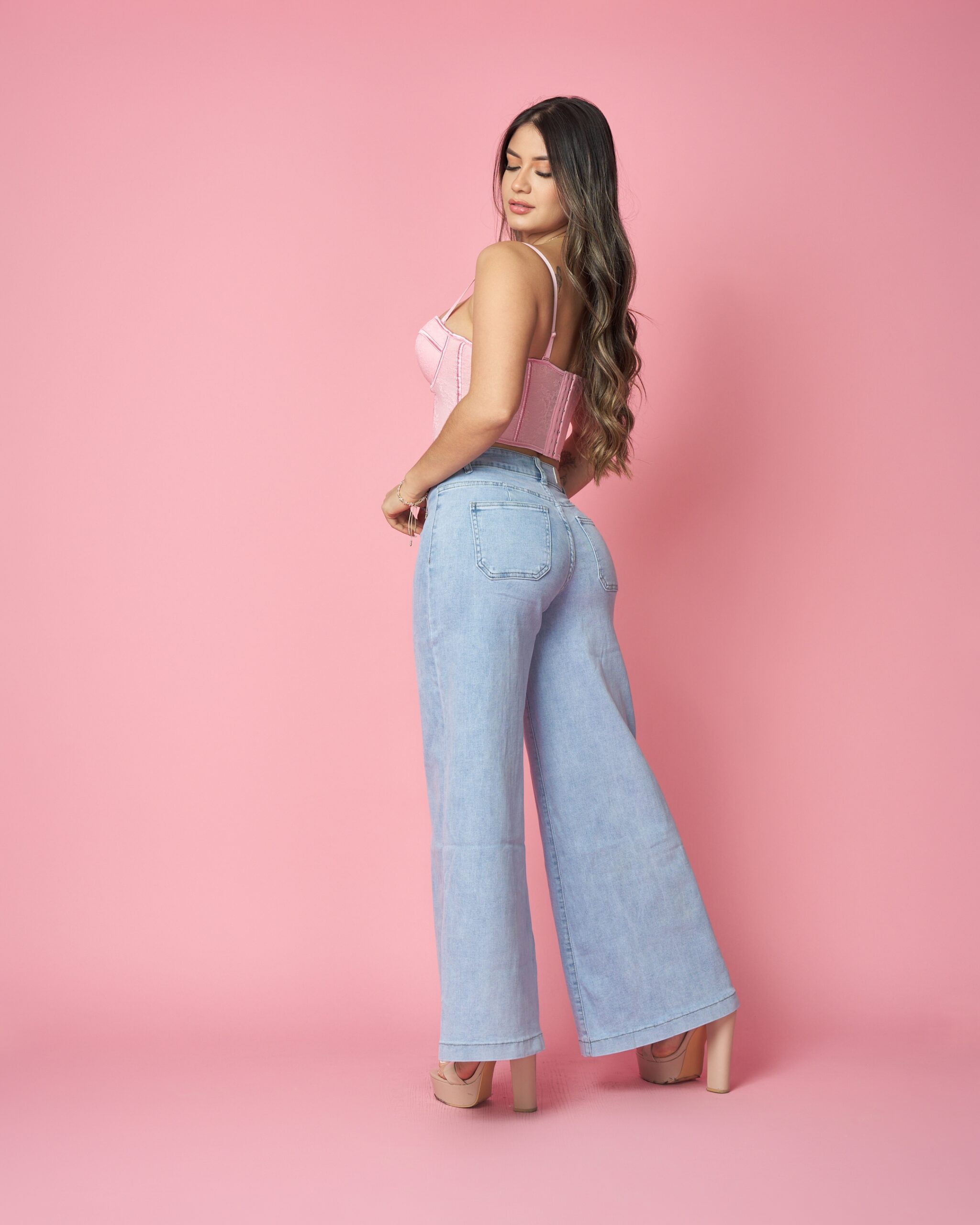 Amig@, el MB2007 es un wide leg ligero, cómodo y súper favorecedor, con tiro alto firme y un tono celeste claro que aporta un look fresco y muy combinable. Su costura central delantera estiliza las piernas, la tela tiene excelente estructura pero es suave al uso, y la horma realza caderas y glúteos de forma natural. Un modelo versátil, moderno y de alta rotación, ideal para cualquier catálogo mayorista.