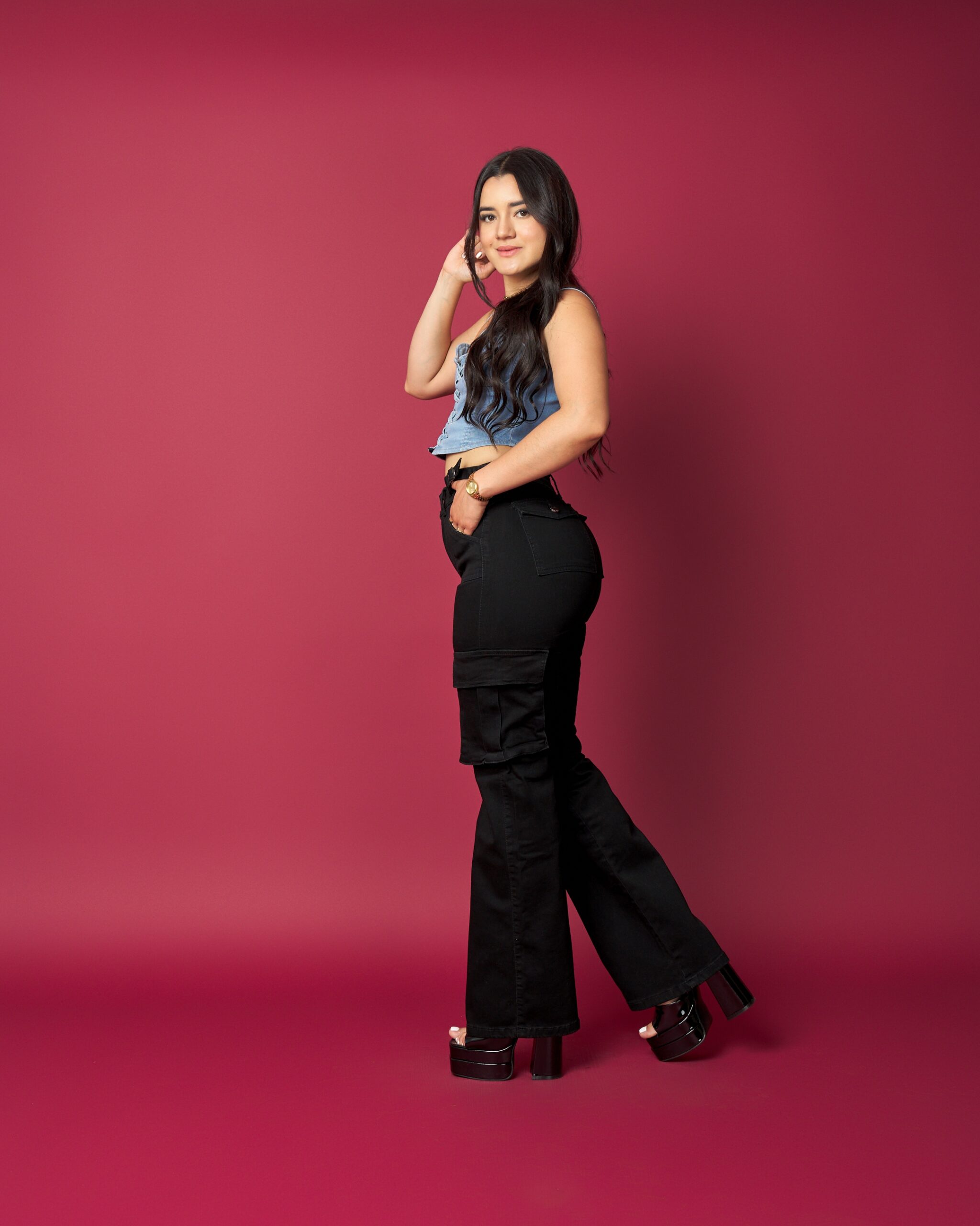 Mayorista, este cargo es de alta rotación. Confeccionado en denim negro firme con excelente estructura, tiro alto que define la cintura y bolsillos cargo funcionales que elevan el diseño. La bota flare estiliza y equilibra la figura, ideal para clientas que buscan moda y comodidad en un mismo modelo.