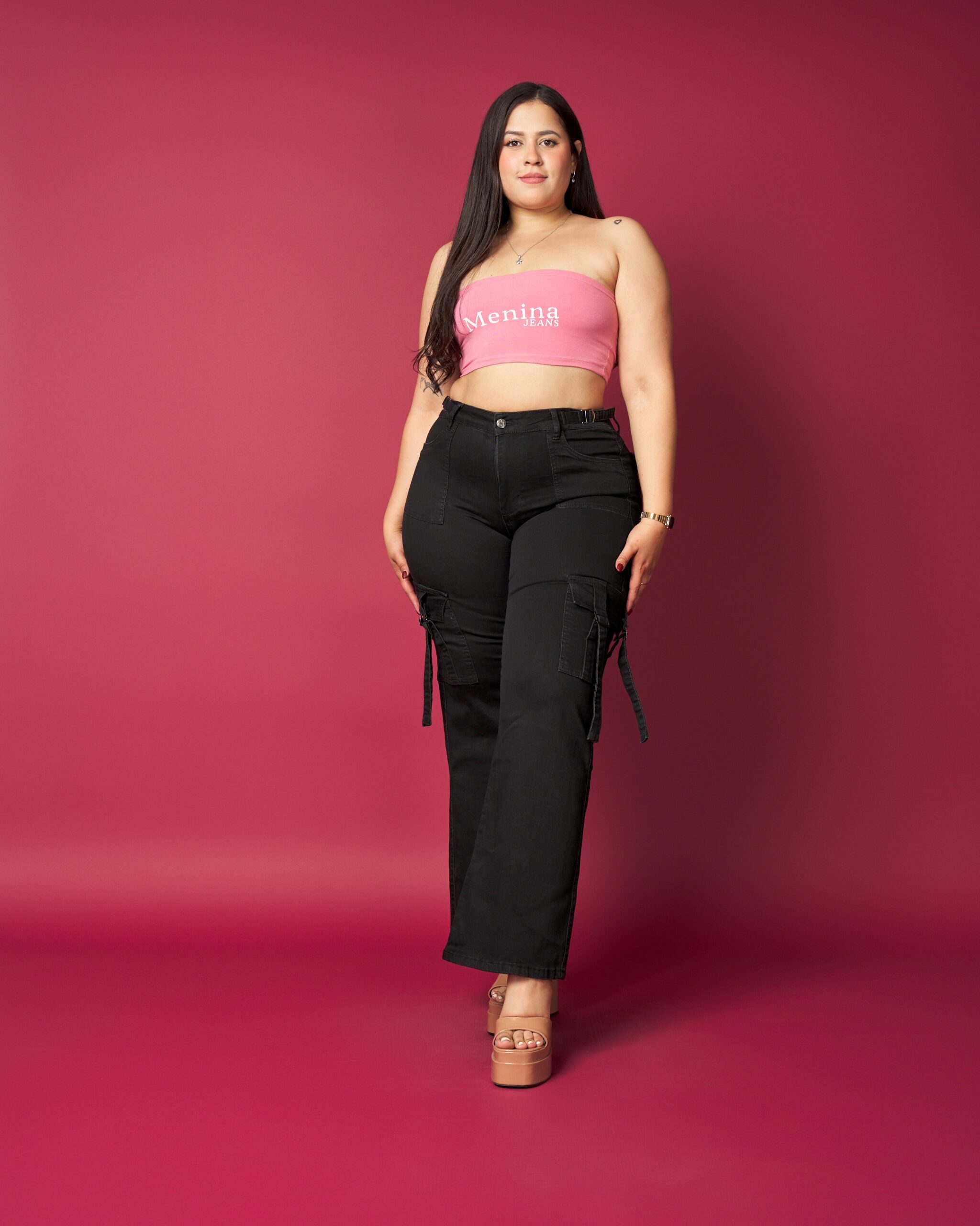 El jeans MNN2597-5 destaca por su diseño cargo con bolsillos laterales funcionales y un calce cómodo que realza la silueta sin perder libertad de movimiento. Su lavado negro lo convierte en un básico versátil para looks urbanos, casuales o más atrevidos.