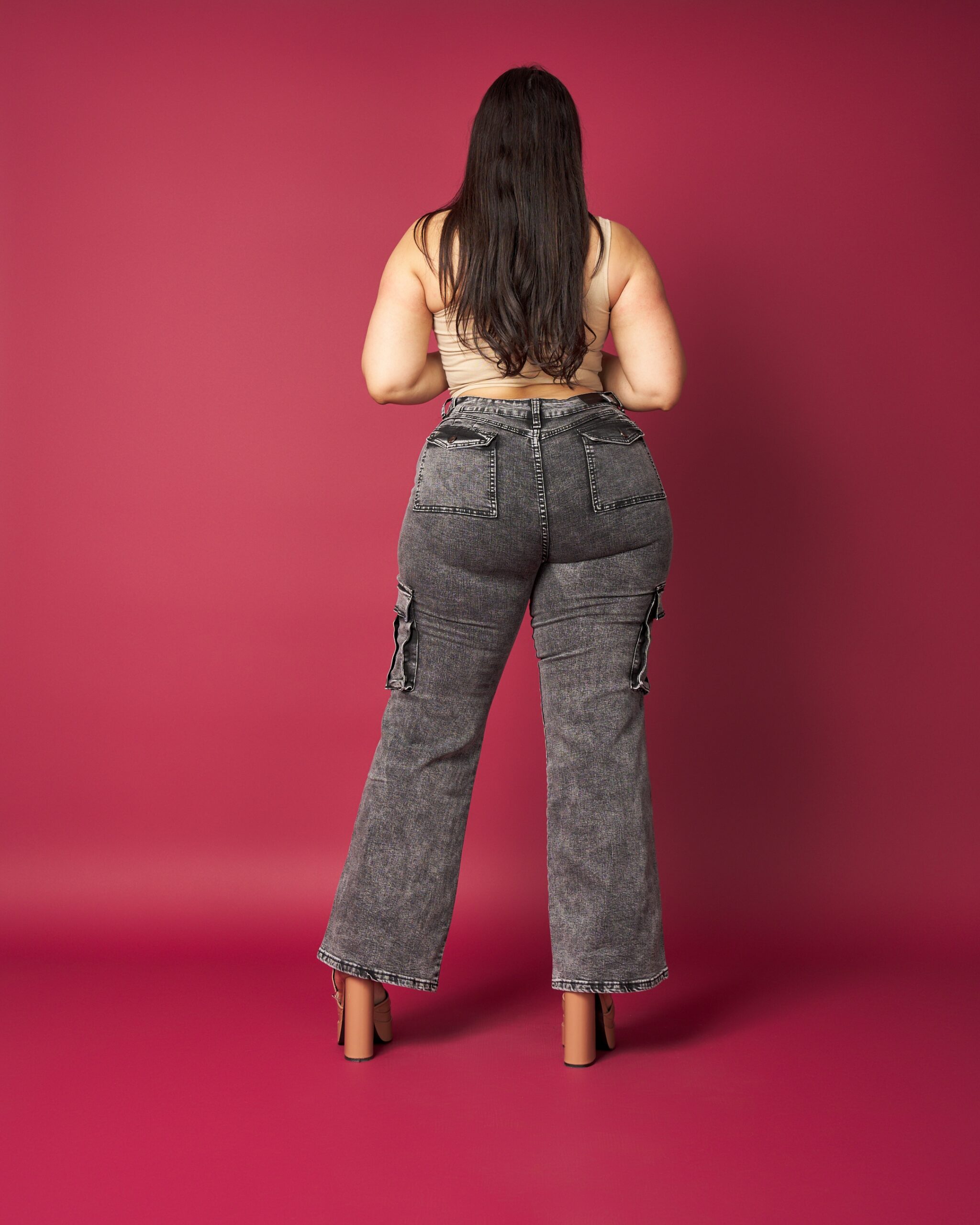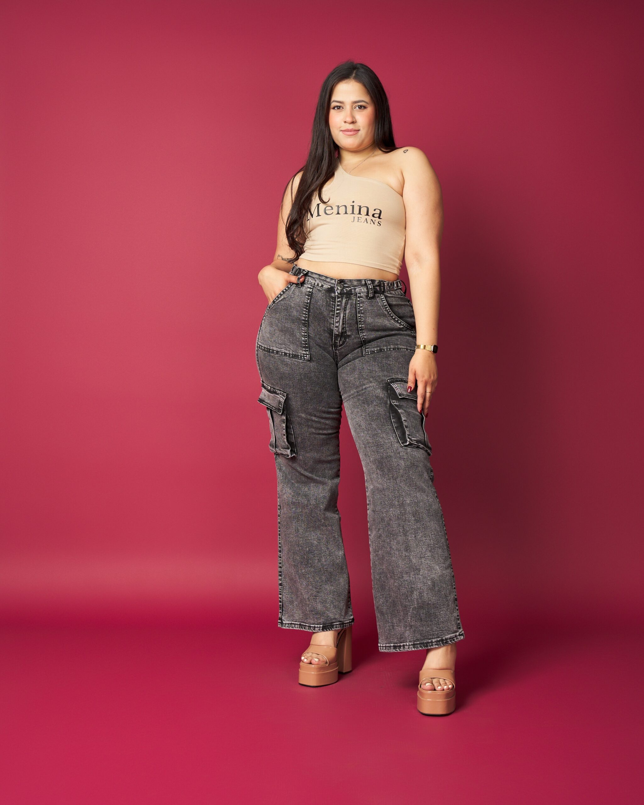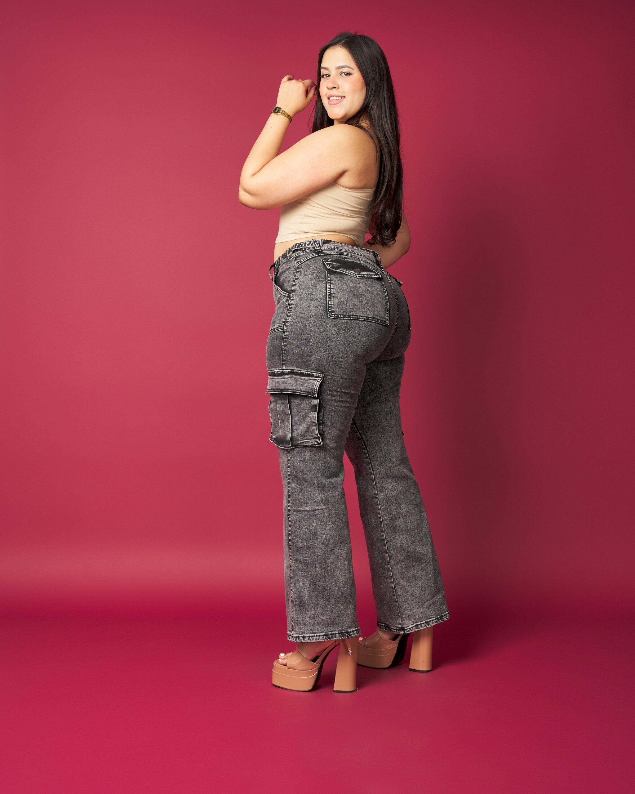 El MNN2598-4 es un jeans cargo en denim gris pensado para venta rápida y alta rotación en tienda.
