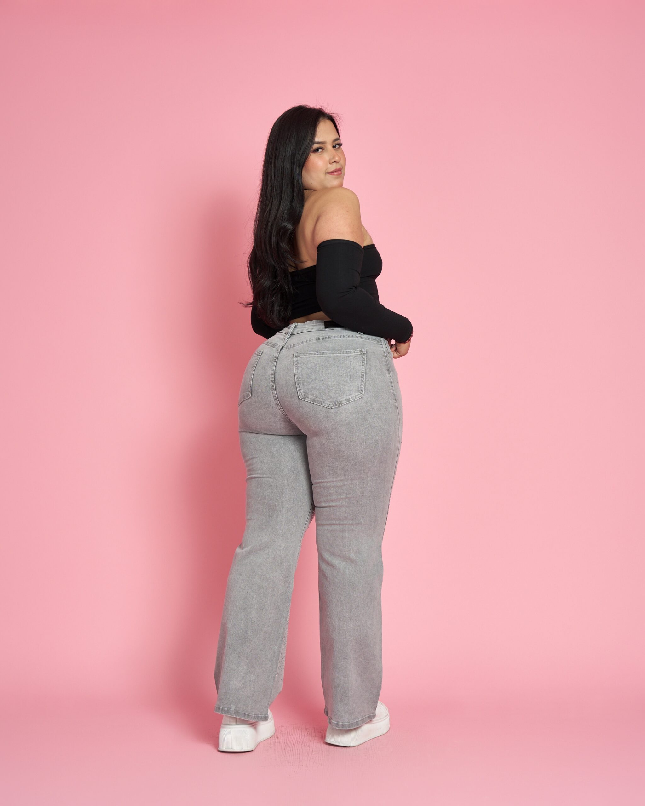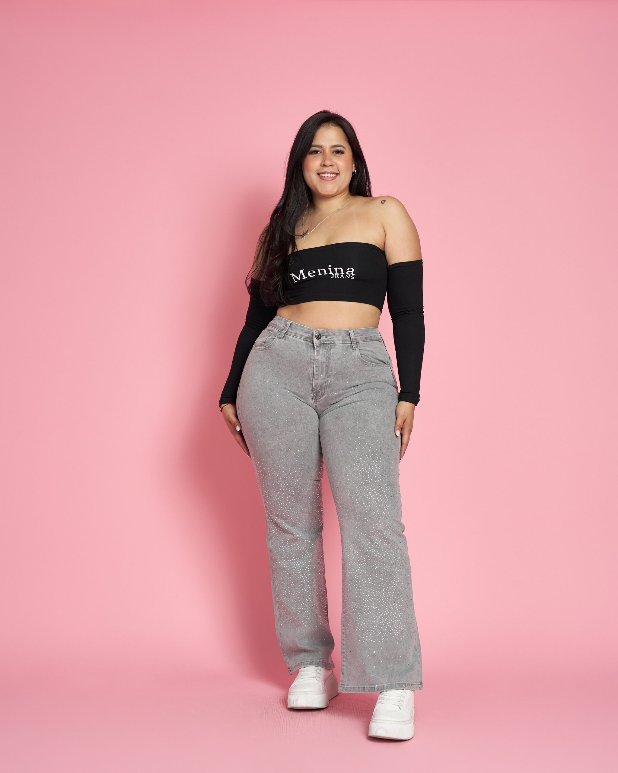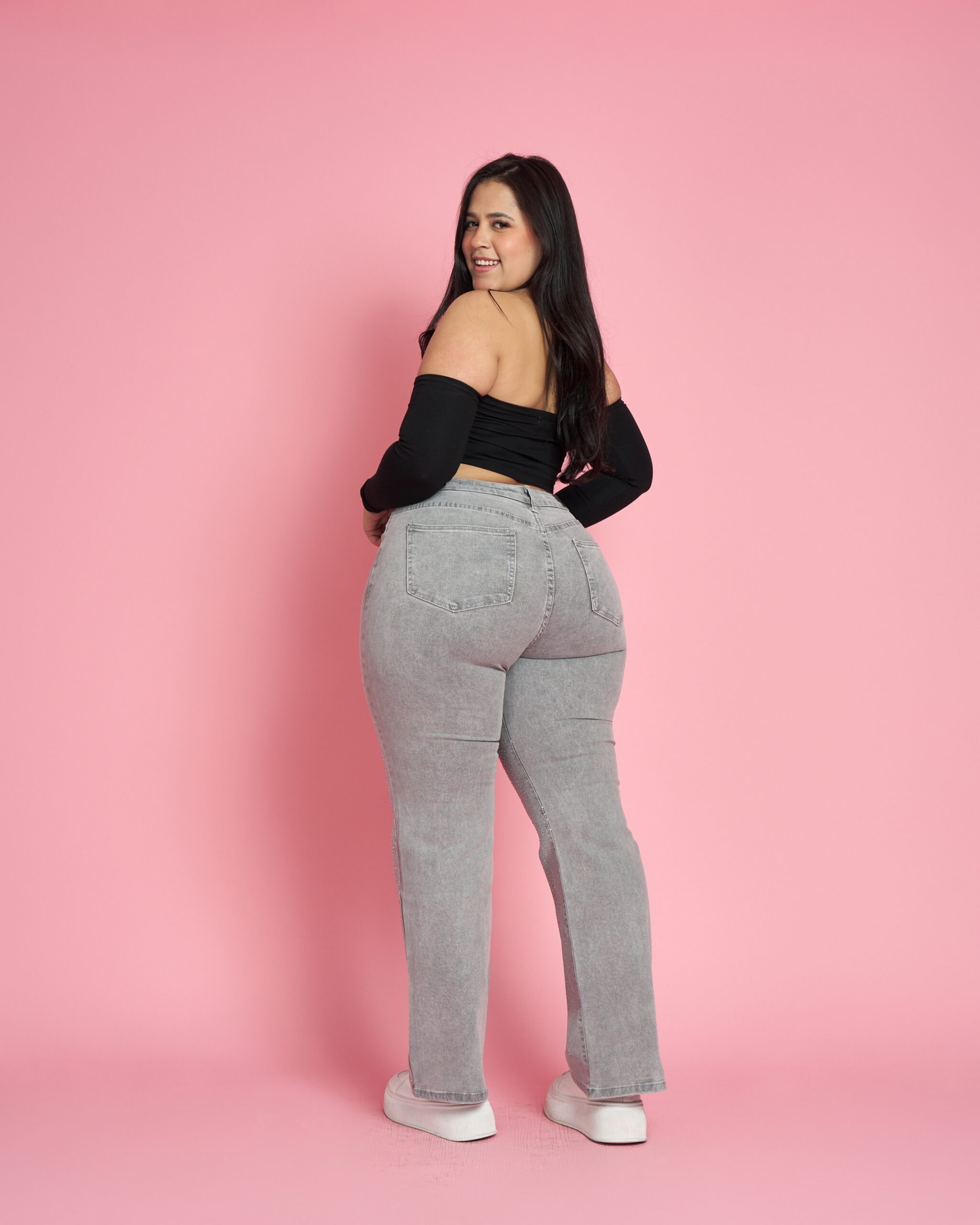 El MNN5602-3 es un jeans recto plus size de tiro alto, diseñado para realzar la figura con comodidad y estilo. Su tela gris elasticada y de excelente calidad aporta soporte, mientras que los brillos frontales en caída vertical estilizan visualmente las piernas y entregan un toque moderno y elegante.