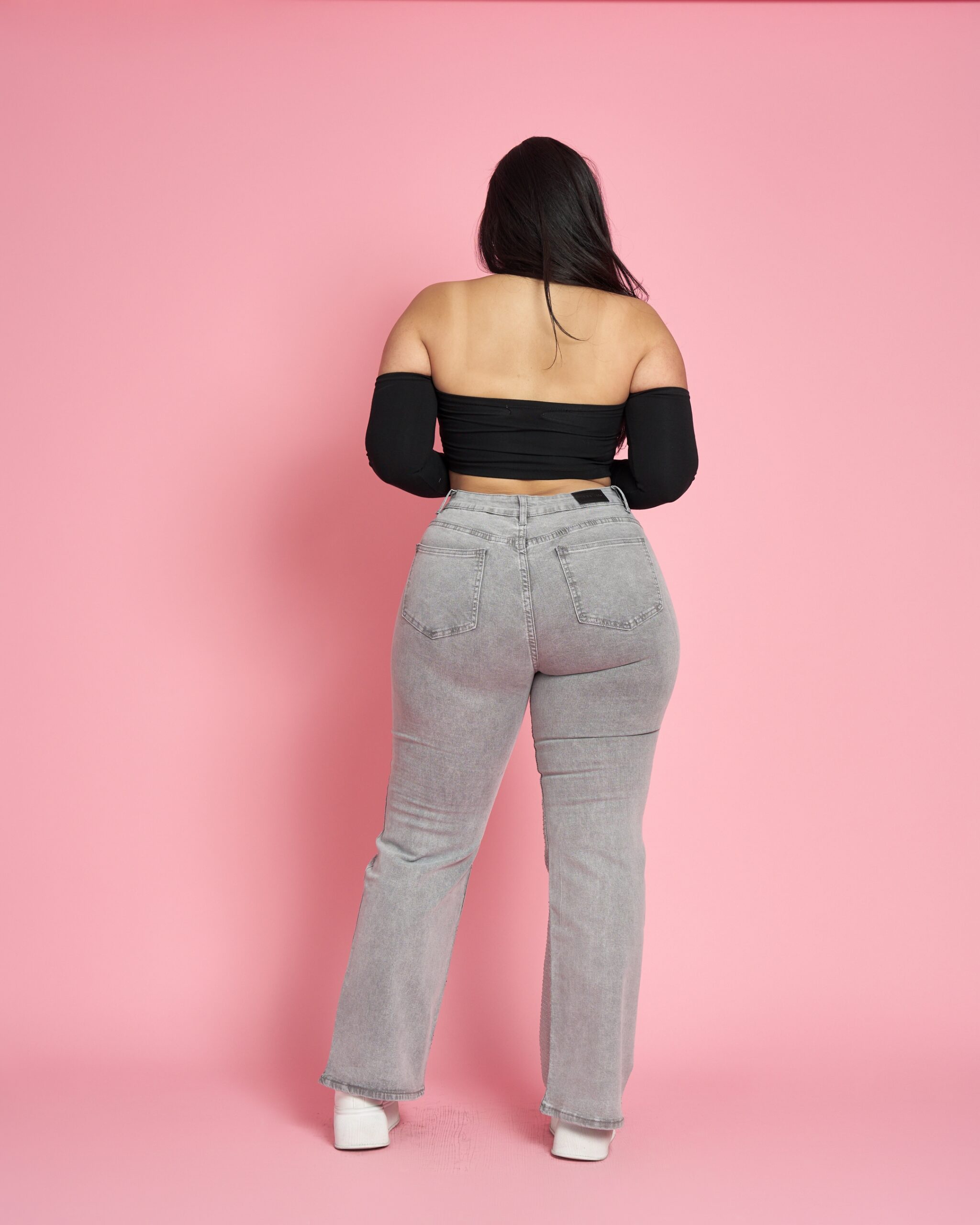 El MNN5607-3 es un jeans recto plus size de tiro alto, confeccionado en denim gris elasticada y de alta durabilidad, ideal para clientas que buscan soporte, estilo y comodidad en una misma prenda.