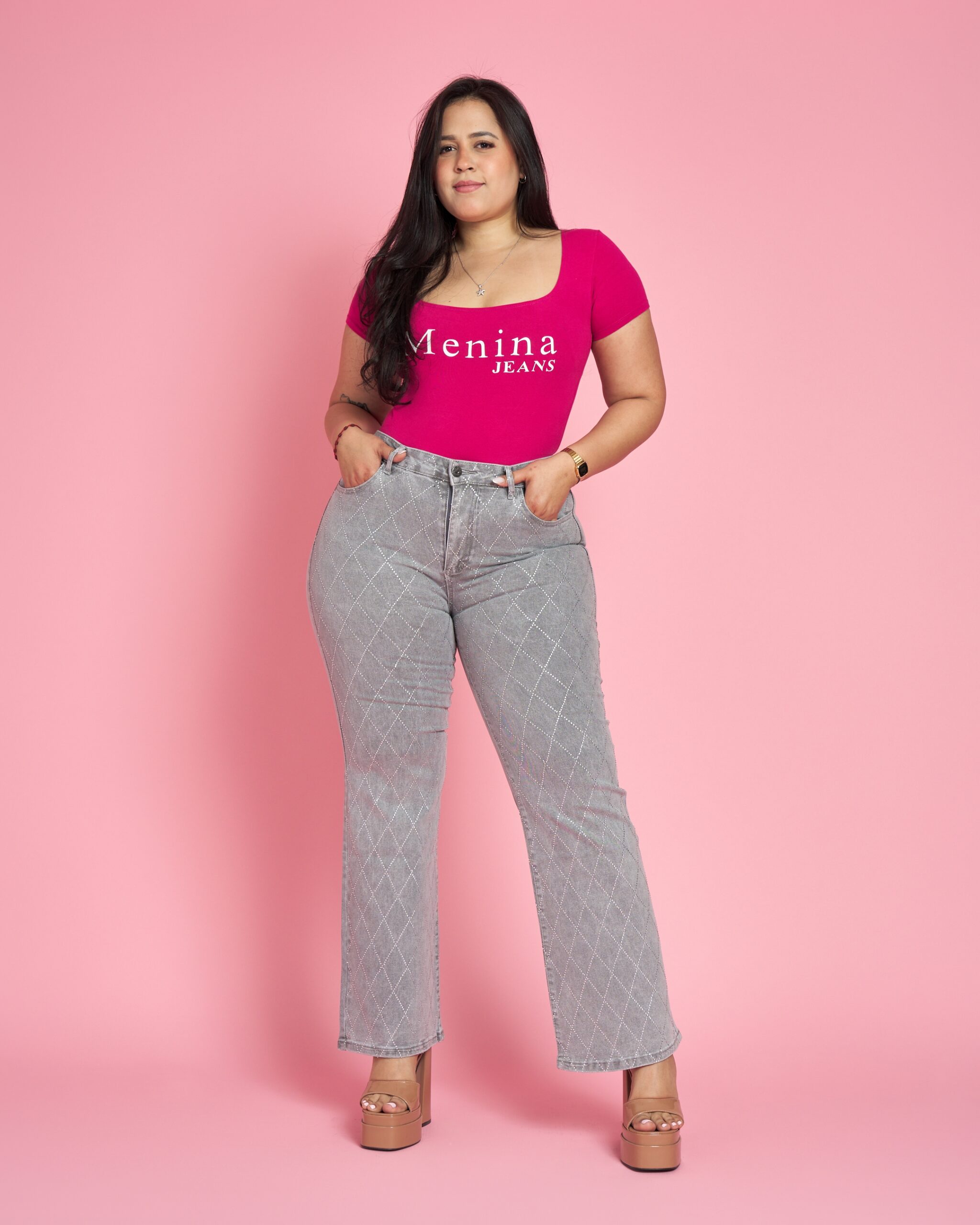 El frente incorpora un diseño diamantado que eleva el look y lo hace diferente a los jeans clásicos, logrando una prenda con estilo propio y de rápida rotación. Su tiro alto favorece la silueta y la pierna recta aporta equilibrio y comodidad en cada uso.